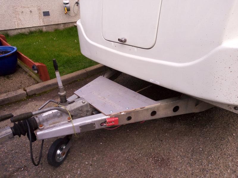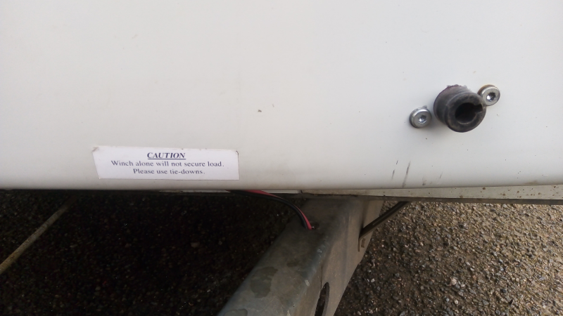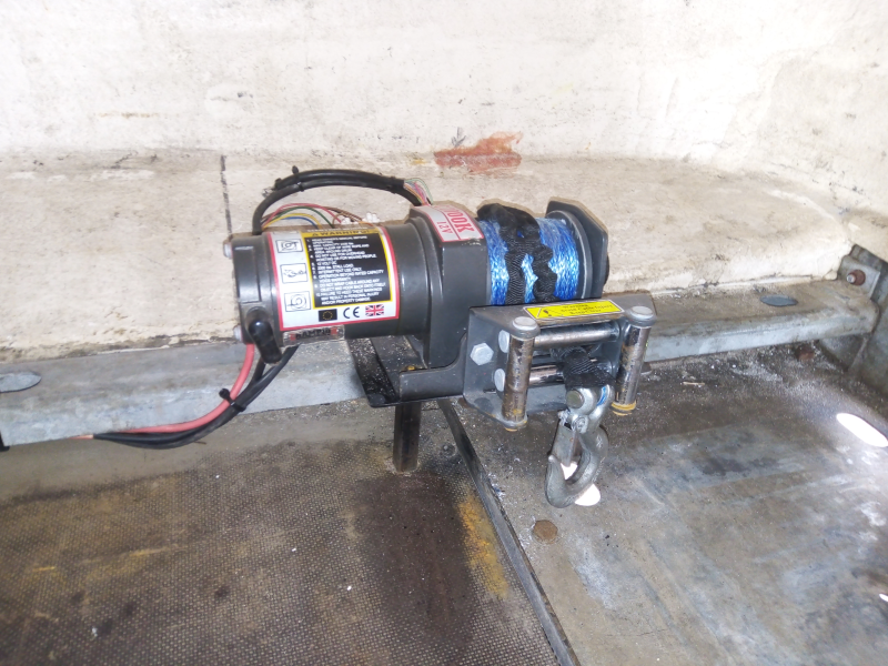 While at the front of the trailer the strap winch was removed as it had be degraded by the UV in the sunlight. I then had space to fit a plywood & aluminium "step" at the front personnel door, this made getting in/out easier. I also fitted an Anderson connection and fed the wires back into the enclosure and onto a FIA cut-off switch. The switch allowed me to switch power for the electric winch I was planning to fit. It also disconnected the charge feed to the planned battery from the truck trailer wiring.