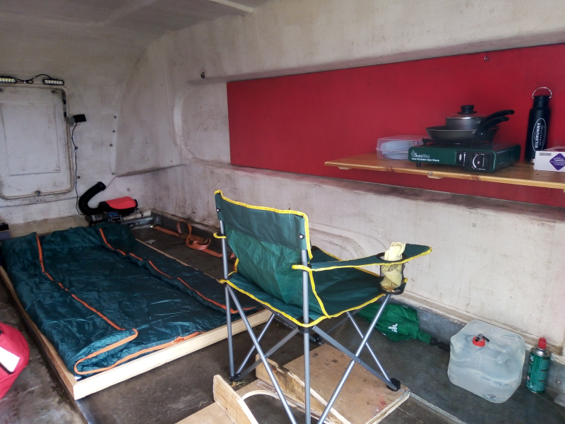 The first weekend was a success, despite the weather. The only issues I found was I had to run the truck on the Saturday for a time to charge the battery up as the heater used quite a bit of capacity. The large LED lights were too powerful. And sleeping on the floor was okay, but heat rises and it was colder than it needed to be as below the frame was the wooden uninsulated floor.