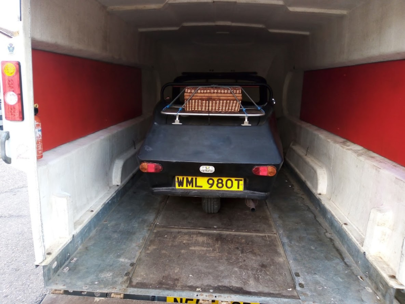 With now having the Ranger Cub and the GTM Coupe at home, it was necessary to store one car in my single garage and one outside under a cover. This worked for the first winter where I had the coupe on my open trailer, covered both with a fitted car-cover and a tarpaulin. However I was worried that this would not be too good for it. I started to price up the cost of installing either a lean to carport or building one myself. The cost soon mounted up and I though for that price I could buy a covered trailer.