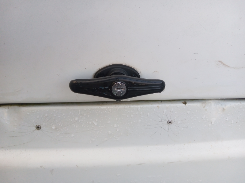 I also added a padlock on the rear doors, and replaced the handle and lock on the front door. This was for security when I was away from the Racepod.