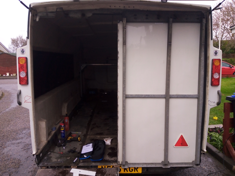 So I set about stripping the interior of the tyre rack (which I later sold), removing all the storage hooks/boxes/pockets from the side walls and removing the extra lights/wiring/switches fitted. I then degreased the inside and washed it out.