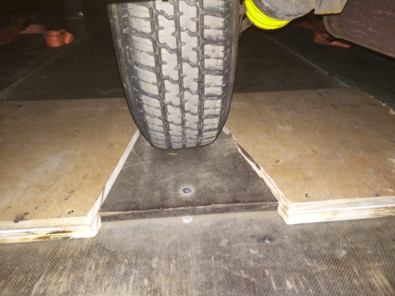 The first trip was uneventful, apart from finding that tying down the rear wheel was difficult. It needed two ratchet straps, but the exhaust tailpipe was in the way. I decided to make some sort of "holder" for it instead. My first try was to make what looked like a trucks 5th wheel. This worked to an extent, but I have since modified it to have higher sides.