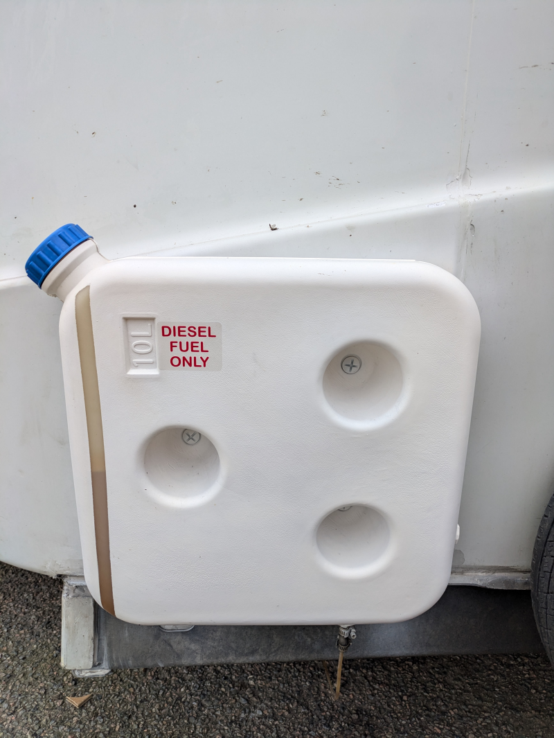 I positioned the diesel tank in front of the spare wheel on the left.