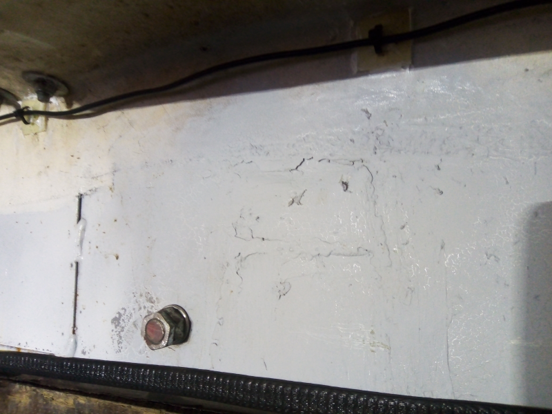 To start a few pop-rivets holding the ply and the old sealant around the outside was replaced. A patch had to be welded in the doorway metalwork, where a small rectangle had been removed to, I suspect, to allow the rear wing end plate of the stock-car to fit.