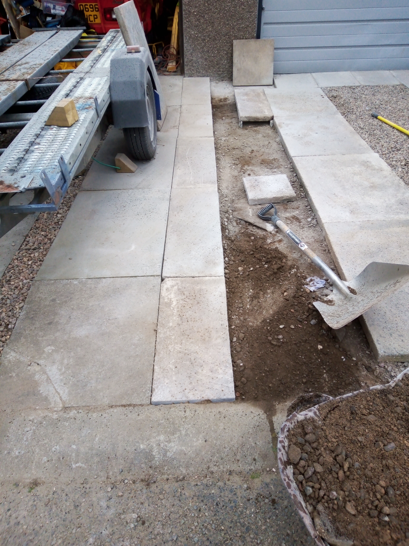 I settled on widening the side away from the house by 300mm, at the same time, I did the neighbours as he wanted similar for his caravan. This still leaves a narrow strip of chuckies so drainage wasn't effected.